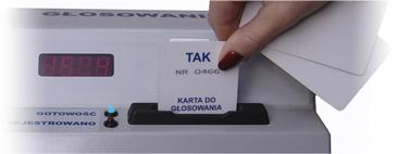 zapewniając tym samym jej bezpieczeństwo i poprawność odbioru danych. Brak jakichkolwiek widocznych przycisków, rozdziału miejsc oddawania poszczególnych rodzajów głosów w połączeniu z dyskretną grafiką kart do głosowania umożliwia użytkownikowi tajność głosowania. Użycie tego rodzaju platformy, dodatkowo w środowisku systemu operacyjnego odpornego na działanie wirusów komputerowych, a w takowym opisana platforma jest eksploatowana, daje praktycznie 100 % pewność poprawności jej działania. Innymi urządzeniami stosowanymi przez nas w ramach tej platformy są mini tablety PC. Mogą one pracować również w sposób bezprzewodowy. Panel wyświetlany na tablecie w trakcie jego działania i sposób posłużenia się nim jest również dla użytkownika bardzo intuicyjny i nie sprawiający jakichkolwiek problemów. Transmisja danych do komputera przetwarzającego odbywa się on-line, kodowanym, weryfikowanym protokołem transmisji bez prowadzenia jakichkolwiek zapisów pośrednich, co zapewnia z jednej strony dużą szybkość działania, a z drugiej nie powoduje jakichkolwiek zastrzeżeń co do istnienia zapisów pośrednich w głosowaniach tajnych. Dysponujemy dużą ilością zarówno czytników kart jak i tabletów funkcjonujących w ramach tej platformy.
